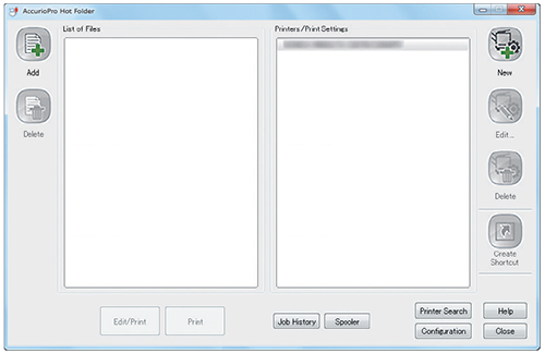 AccurioPro Hot Folder allows you to directly print a PDF or TIFF file without starting an application. You can also preset the job settings and reduce the burden of making print settings